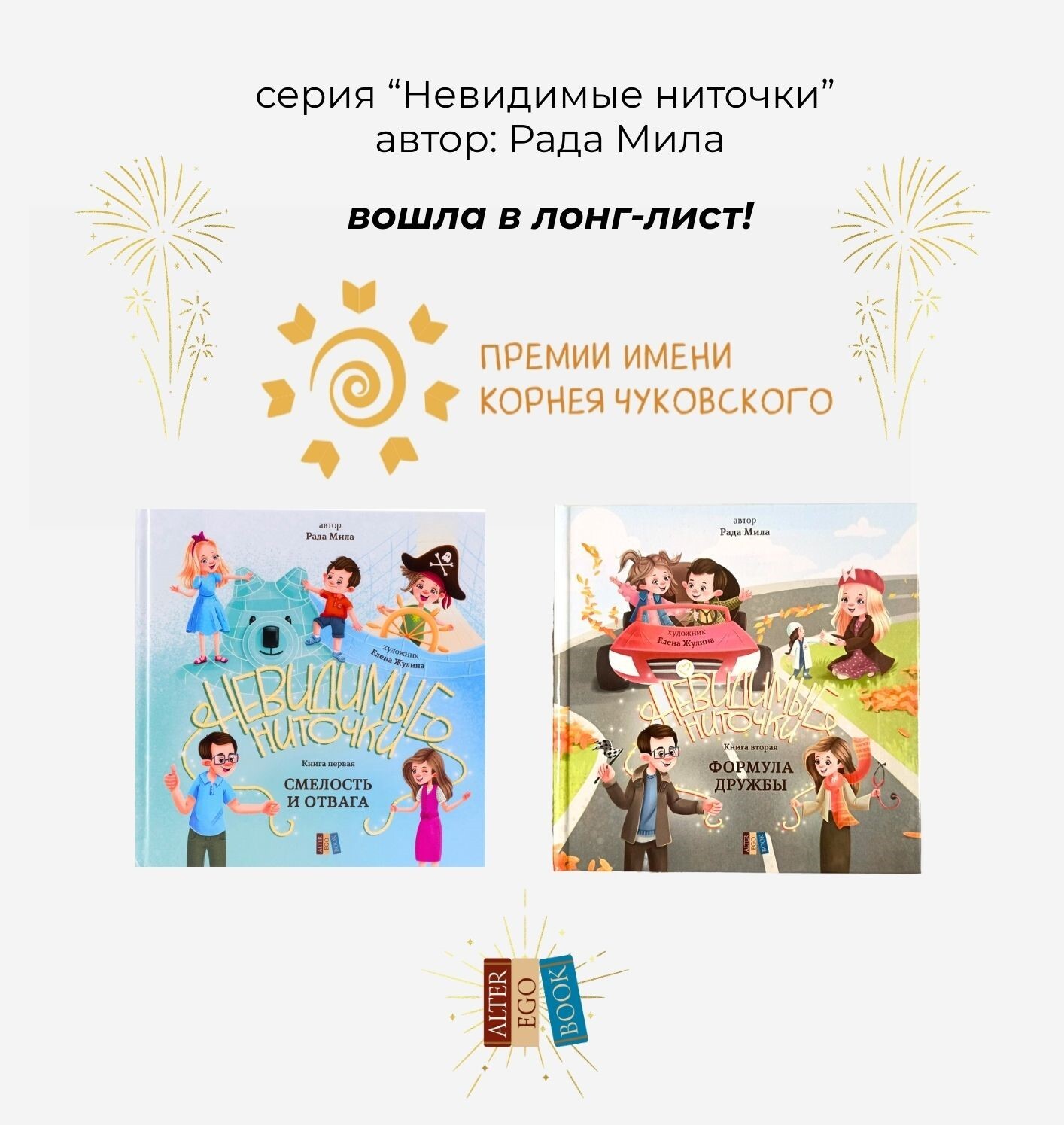 Издательство Alter Ego Book в лонг-листе премии им. Корнея Чуковского с первыми двумя книгами серии "Невидимые ниточки":